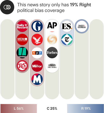 For example, if 15 sources are reporting on a story, and only 10% of coverage is from right-leaning sources, it would indicate a lack of coverage from sources that typically report on stories that support a right-leaning narrative. If a story only has 10% coverage from left-leaning sources, it would indicate a lack of coverage from sources that typically report on stories that support a left-leaning narrative.